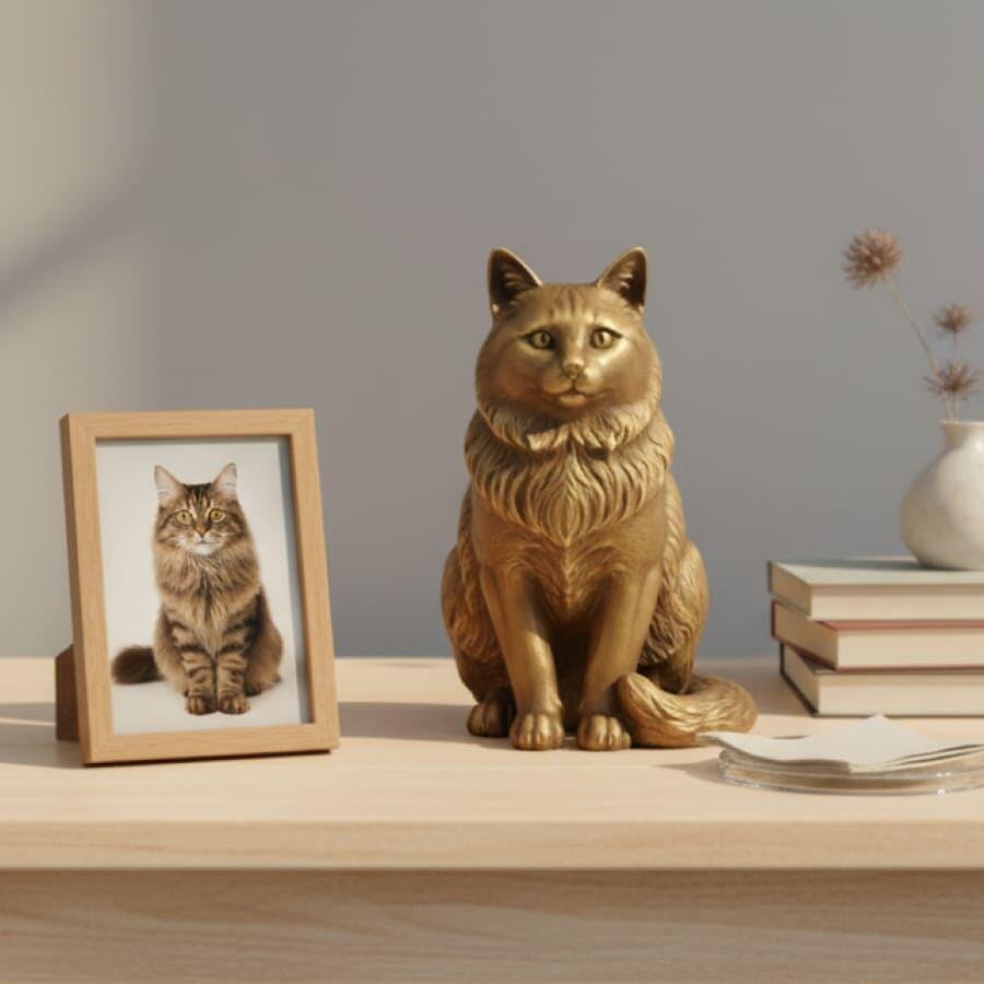 Experience a faithful replica of your pet—captured at true scale and reproduced with exact likeness. Using your photos, we rebuild the overall form, posture, and presence so the finished statue matches the original from every angle. A one-to-one recreation that feels instantly familiar, ideal for display, remembrance, or gifting.